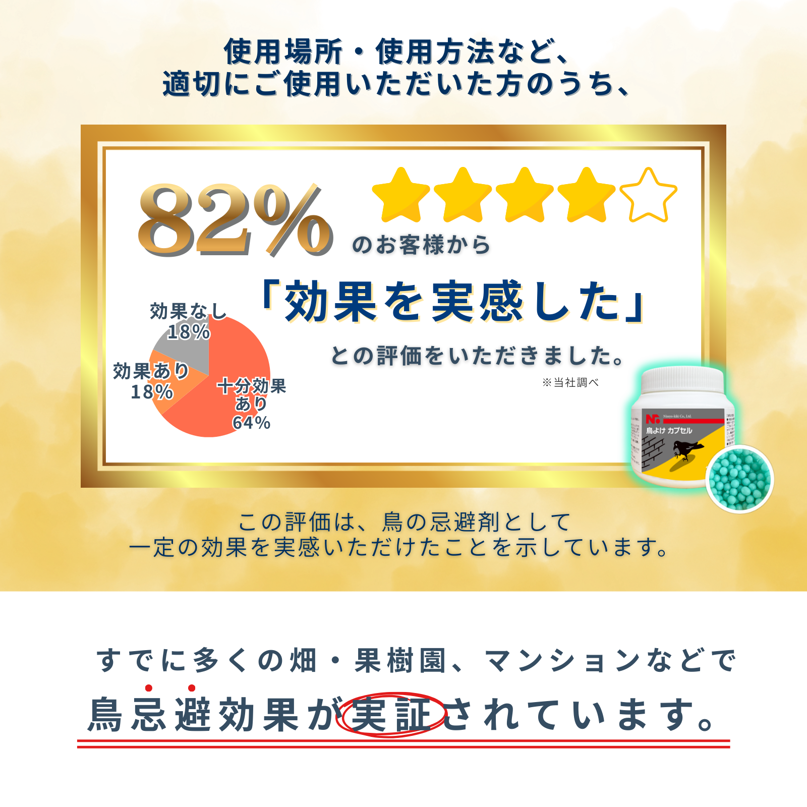 本製品は、ニオイのチカラで鳥に“ここは危険”と感じさせ、近づくのを防止する忌避カプセル。