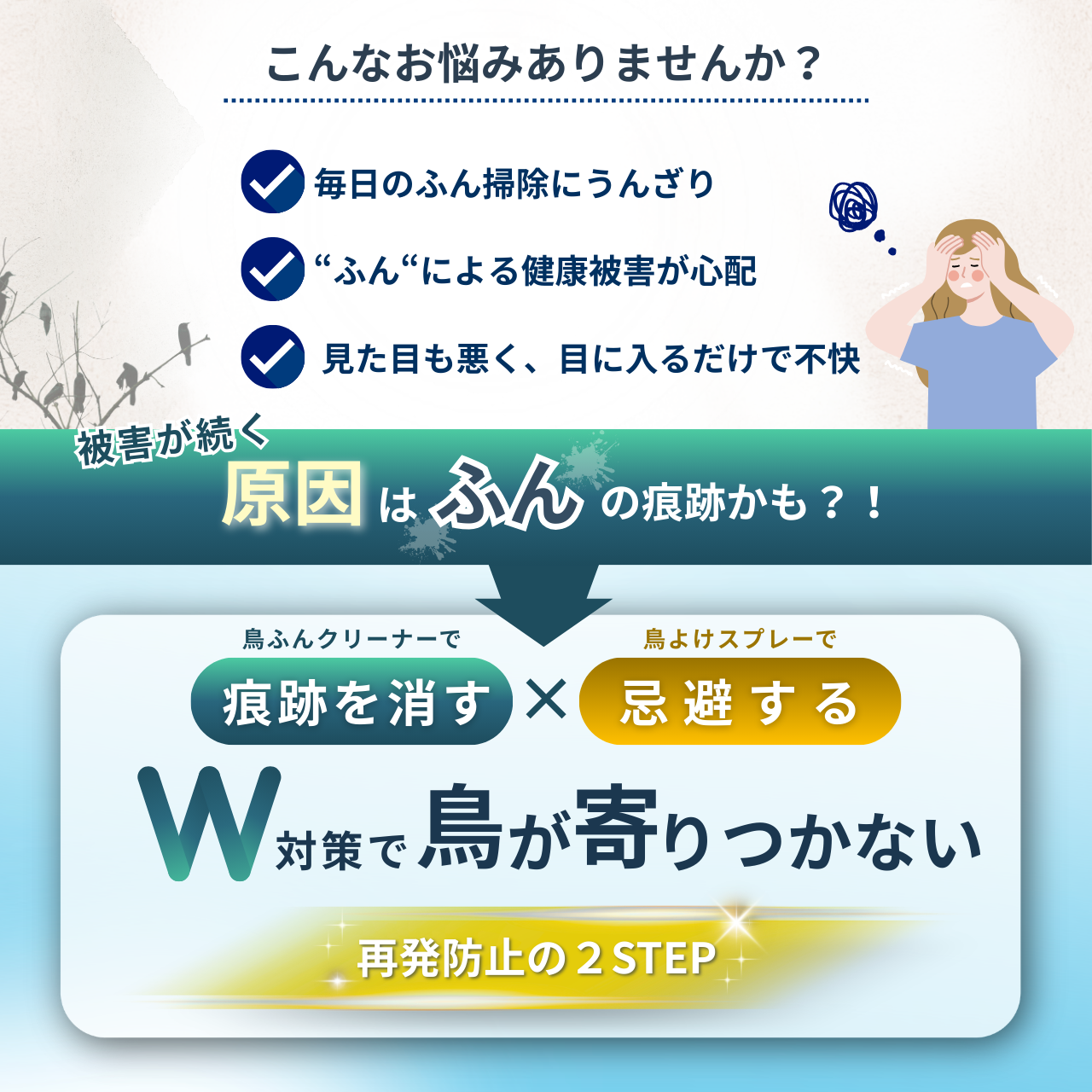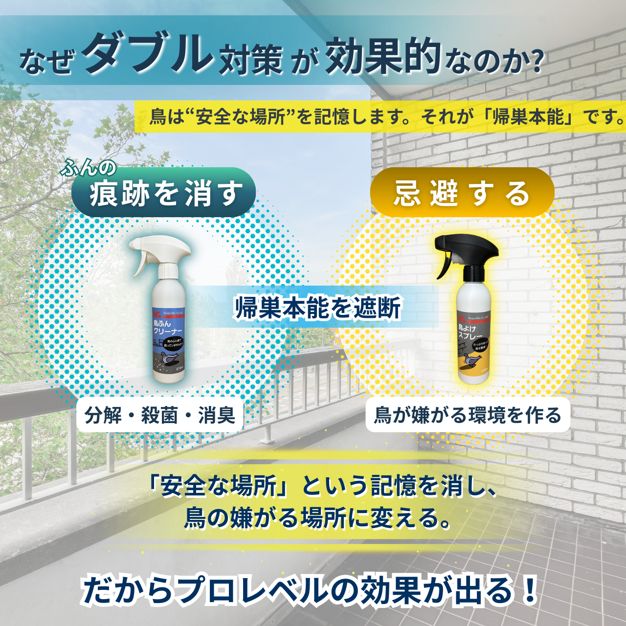 【お得な大容量セット】ベランダの鳥フン対策セット|鳥よけスプレー+鳥ふんクリーナー