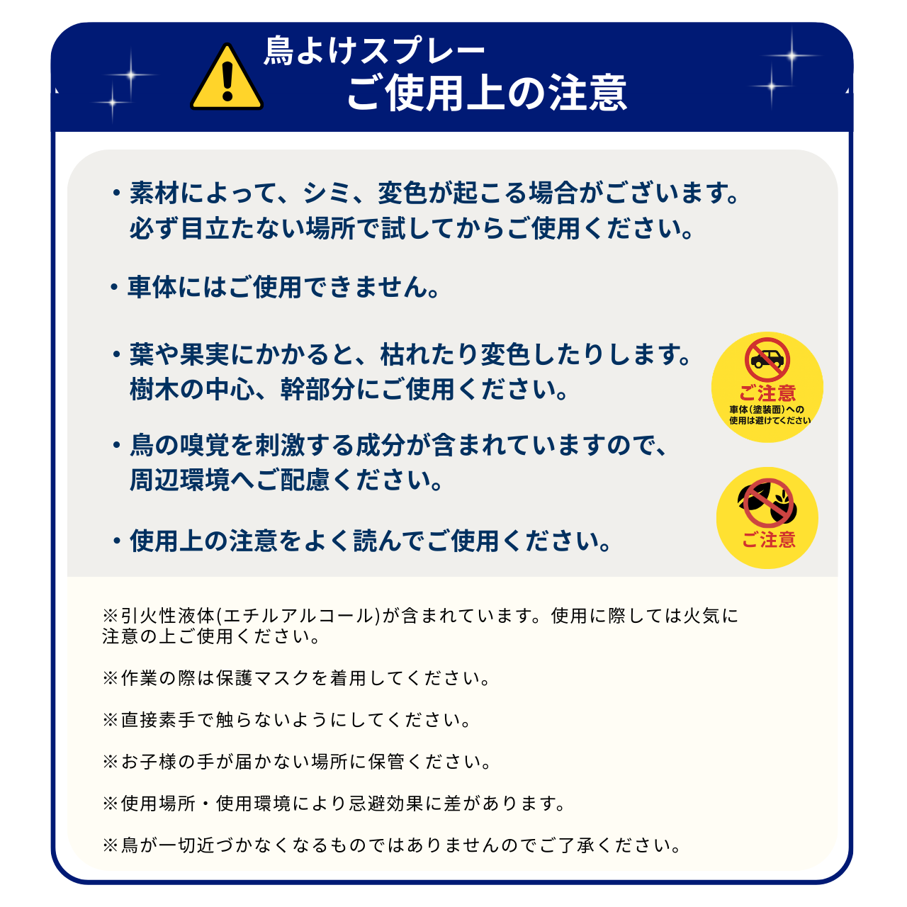 鳥よけスプレー使用上のご注意